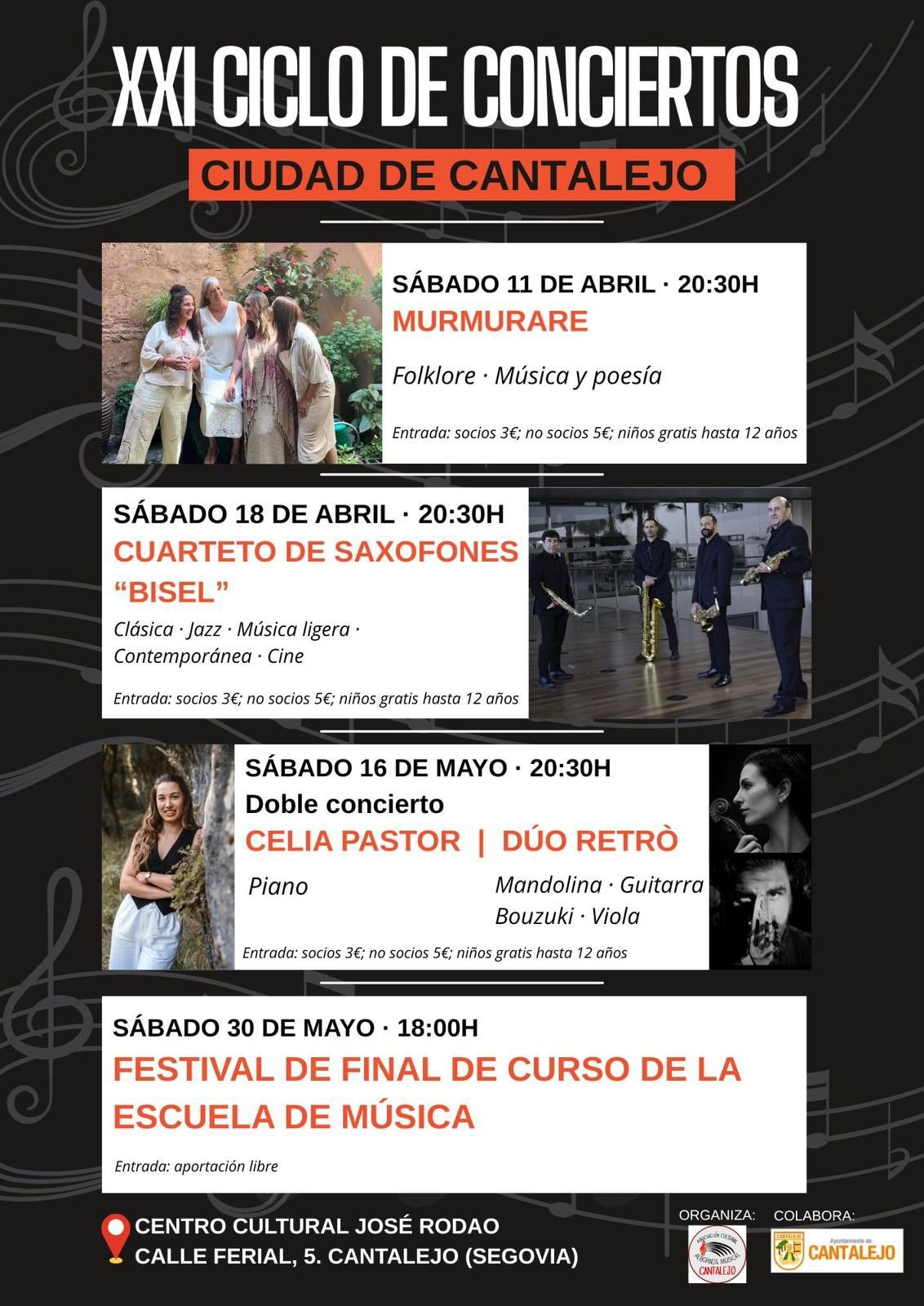XXI Ciclo de Conciertos Ciudad de Cantalejo XXI Ciclo de Conciertos Ciudad de Cantalejo Conciertos organizados por la Escuela de Música de Cantalejo.